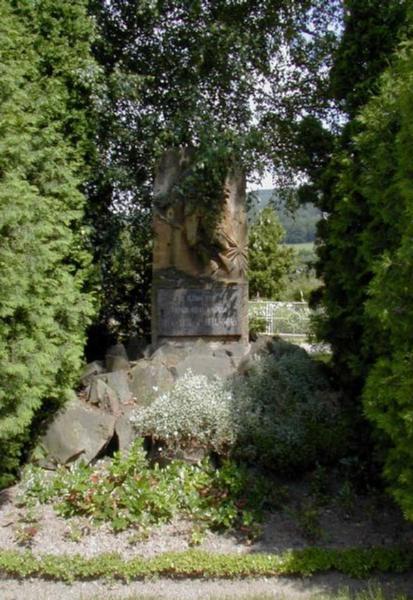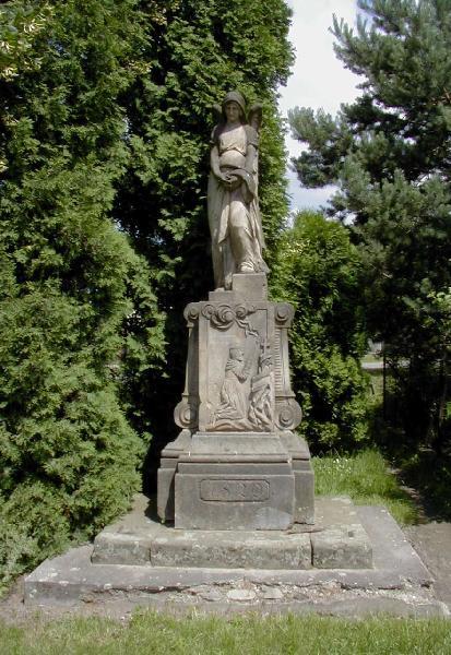 Památka místního významu. Na skalce umístěna pískovcová deska s mužskou figurou ve vojenské uniformě. Pomník osazen nápisovou deskou, vybudován v 1. třetině 20. století.