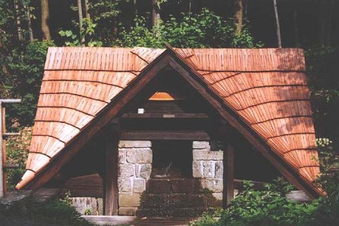 Studánka s přístřeškem pod Dubovou horou na modré turistické značce asi 10 minut chůze od vyhlídkového altánku.